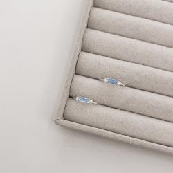 Anel zircônia retangular azul com mini zircônias | Mya Prata
