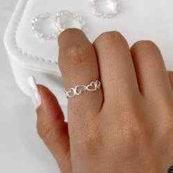 Descrição: Anel aliança corações de lado vazado fabricado(a) em prata