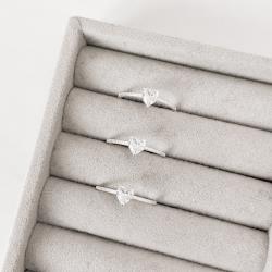 Descrição: Anel solitário zircônia coração cristal detalhe bolinhas fabricado(a) em prata