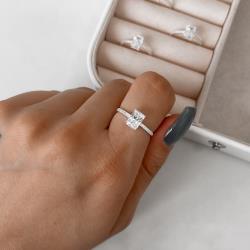 Anel solitário zircônia retangular detalhe cravejado | Mya Prata