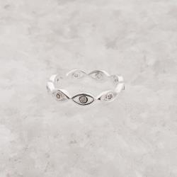 Descrição: Anel olhos com zircônia fabricado(a) em prata