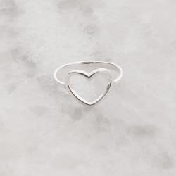 Descrição: Anel coração liso vazado fabricado(a) em prata
