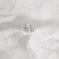Descrição: Anel solitário zircônia quadrada fio duplo fabricado(a) em prata