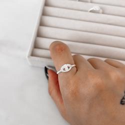 Anel olho cravejado detalhe riscado | Mya Prata