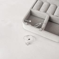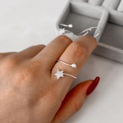 Anel estrelas lisa e cravejada regulável G | Mya Prata