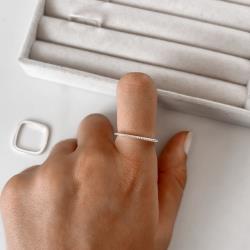 Anel quadrado metade cravejado | Mya Prata