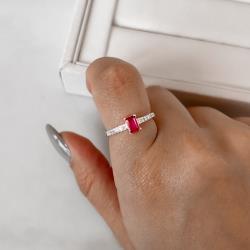 Anel zircônia retangular cereja com cravejado