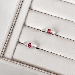 Anel zircônia retangular cereja com cravejado | Mya Prata