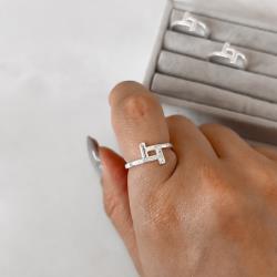 Anel 2 palitos detalhe cravejado | Mya Prata