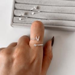 Anel letra V cravejada e zircônia regulável P | Mya Prata