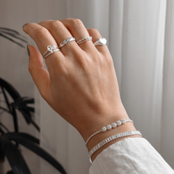 Descrição: Anel coração trabalhado dedinho fabricado(a) em prata