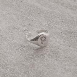 Descrição: Anel oval letra P cravejada regulável P fabricado(a) em prata
