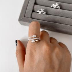 Anel 3 fios meia aliança com zircônias gota | Mya Prata