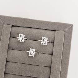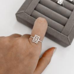 Anel zircônia retangular cristal com cravejado | Mya Prata
