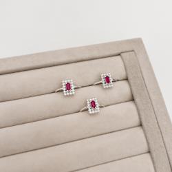 Anel zircônia retangular rubi com cravejado | Mya Prata
