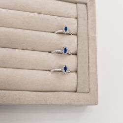 Anel solitário zircônia navete azul com cravejado