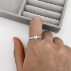Anel solitário 5mm fio duplo cravejado | Mya Prata