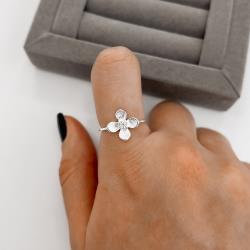 Anel flor 4 pétalas com zircônia | Mya Prata