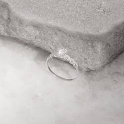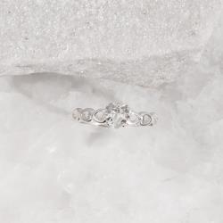 Descrição: Anel solitário zircônia coração com corações vazados fabricado(a) em prata