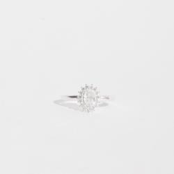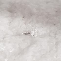 Descrição: Anel zircônia oval cristal com cravejado fabricado(a) em prata