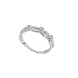 Anel fio duplo ondulado com bolinhas, navetes e zircônias | Mya Prata