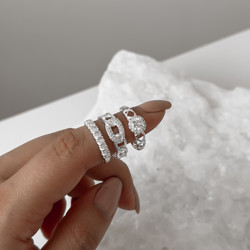 Descrição: Anel zircônia redonda com cravejado e vazado na lateral fabricado(a) em prata