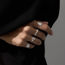 Anel ondulado zircônias navete | Mya Prata