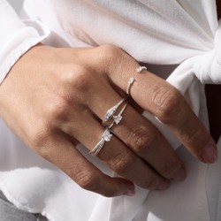 Anel 2 pontas cravejadas regulável P | Mya Prata