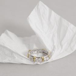 Anel aliança cravejada com moissanites 3mm ródio | Mya Prata
