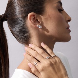 Anel solitário moissanite 6mm com cravejado lateral | Mya Prata