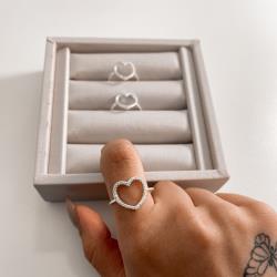 Descrição: Anel coração 14mm vazado cravejado fabricado(a) em prata