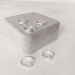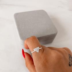Anel triângulo 10mm detalhe V cravejado | Mya Prata
