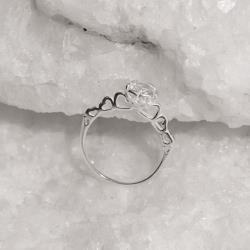 Descrição: Anel solitário detalhe corações vazados fabricado(a) em prata