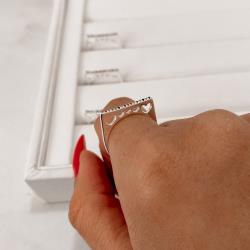 Anel reto cravejado colorido detalhe corações | Mya Prata