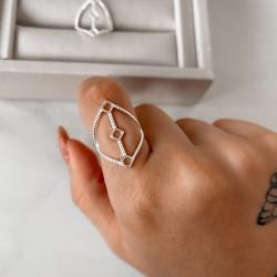 Anel losango vazado trabalhado | Mya Prata