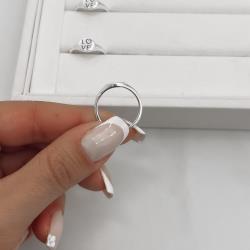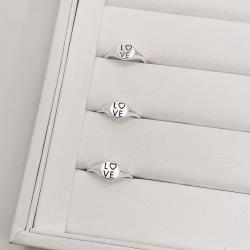 Descrição: Anel redondo escrito love resina fabricado(a) em prata