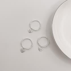 Anel fio bolinhas e zircônias com pingente coração cravejado