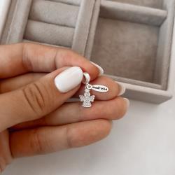 Berloque pingente anjo cravejado com placa escrito madrinha | Mya Prata