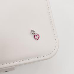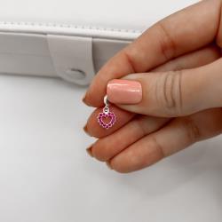 Berloque pingente coração vazado cravejado rosa 8mm | Mya Prata