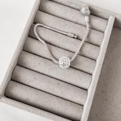 Berloque bola 3D detalhe hexágonos 11mm | Mya Prata