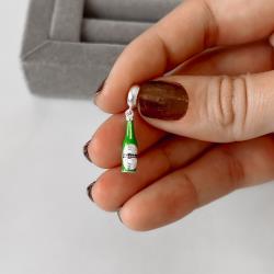 Descrição: Berloque pingente Heineken resina 17mm fabricado(a) em prata