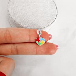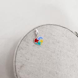 Berloque pingente coração símbolo autismo 11mm resina | Mya Prata