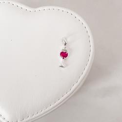 Berloque pingente taça detalhe zircônia coração rubi 12mm | Mya Prata