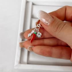 Berloque pingente patuá trevo, figa e pimenta resina