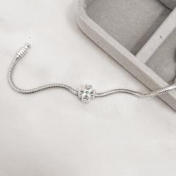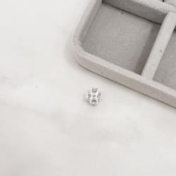 Berloque separador trevo vazado detalhe zircônia verde 10mm | Mya Prata