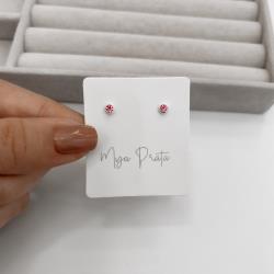 Brinco infantil zircônia 3mm rosa tarraxa baby - CI | Mya Prata