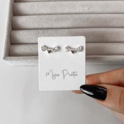 Brinco ear cuff coração vazado, liso e cravejado tarraxa | Mya Prata