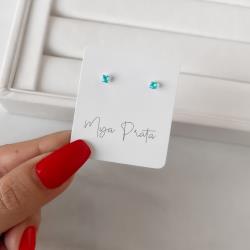 Brinco zircônia quadrada azul 3mm | Mya Prata