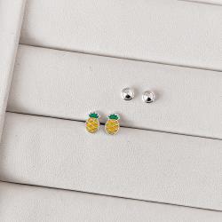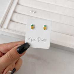 Brinco infantil abacaxi resina 8mm tarraxa baby | Mya Prata