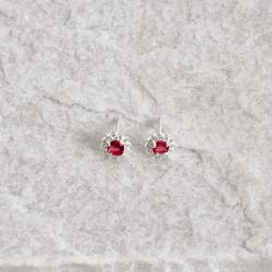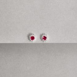 Brinco zircônia redonda cereja com cravejado 7mm | Mya Prata